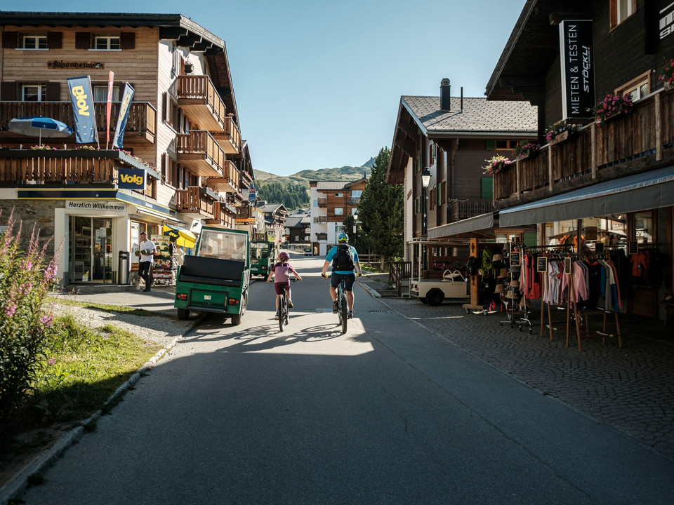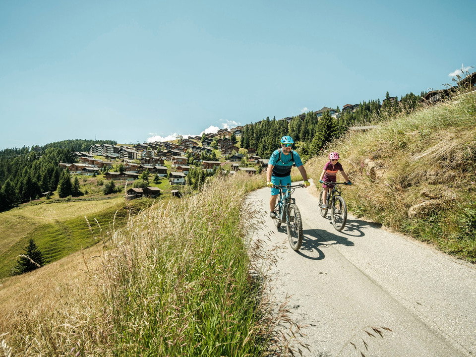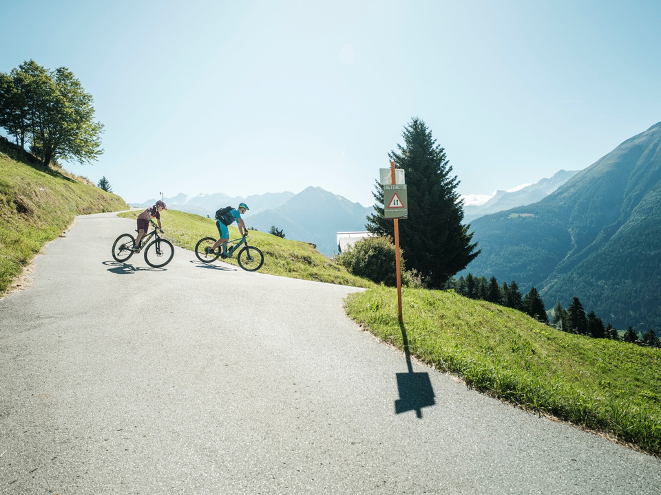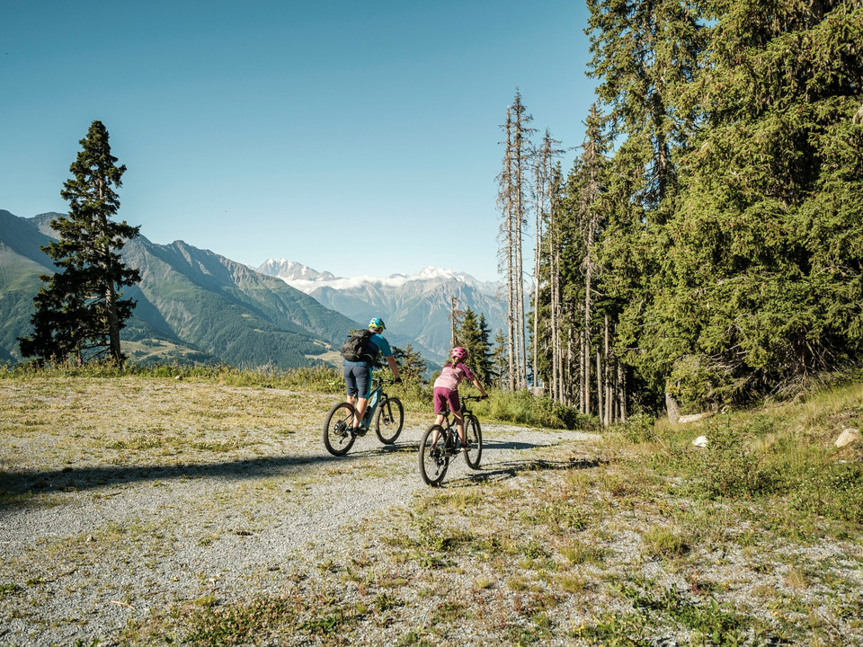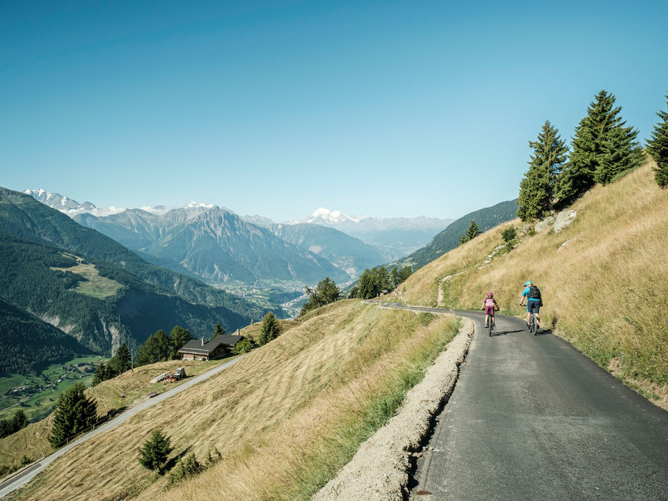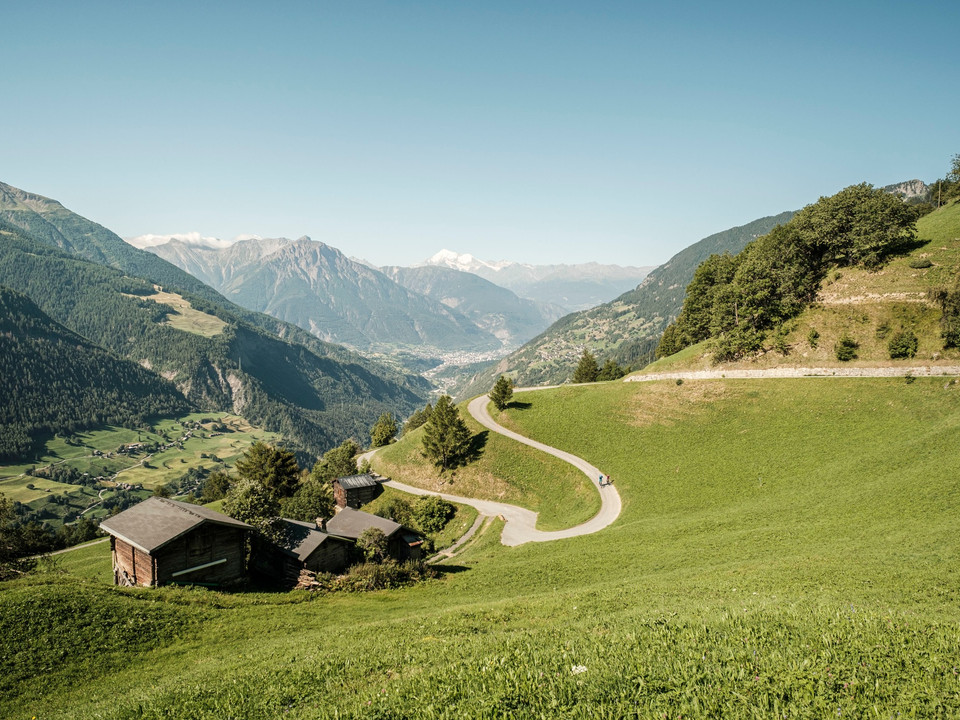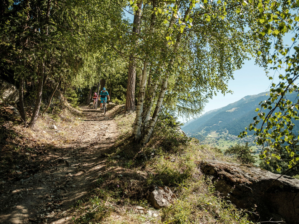 Von der Bergstation Riederalp Mitte fährst du über die asphaltierte Aletschpromenade auf die Bettmeralp. Durchquere den Dorfkern und fahr weiter in Richtung Sessellift Wurzenbord. An der Waldgrenze angekommen, folgst du dem Waldweg, der am Seilpark Baschweri vorbeiführt, bis zur Abzweigung Alpmatten (rechter Hand). Jetzt geht es bergab! Du passierst den Weiler Domo und folgst der asphaltierten Strasse weiter talwärts. Ca. 1km vor Betten Dorf biegst du nach der letzten Haarnadelkurve links auf den Naturweg ab und bikst bis zum Weiler Martisberg. Hier wartet die nächste Abfahrt, hinunter nach Lax. Von dort führt die Bike-Route oberhalb der Hauptstrasse nach Fiesch. Beim ÖV-Hub angekommen, nimmst du die Luftseilbahn hoch auf die Fiescheralp. Über den Herrenweg geht es nun weiter in Richtung Bettmeralp. Lediglich die Passage Bättmer-Hitta – Wurzenbord ist auf diesem Tourabschnitt etwas steil. Die letzte Etappe führt über die Aletschpromenade zurück zur Bergstation Luftseilbahn Riederalp Mitte.