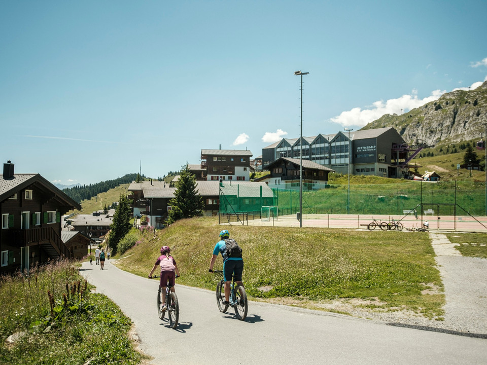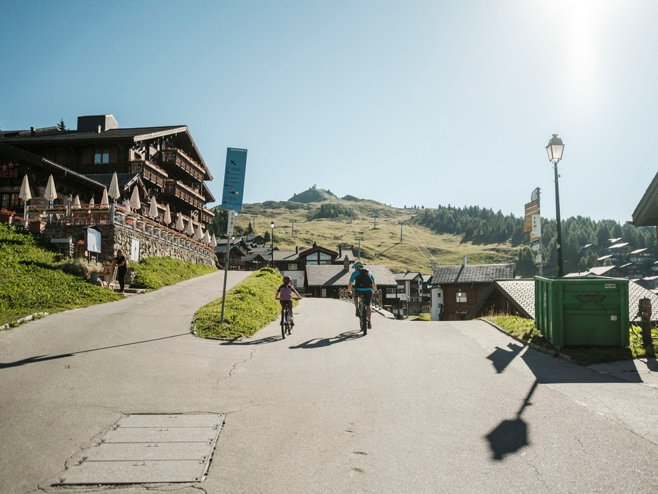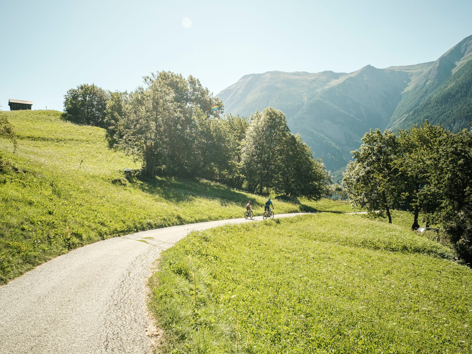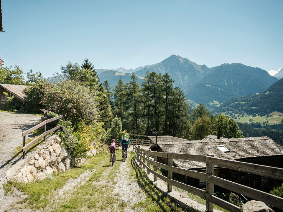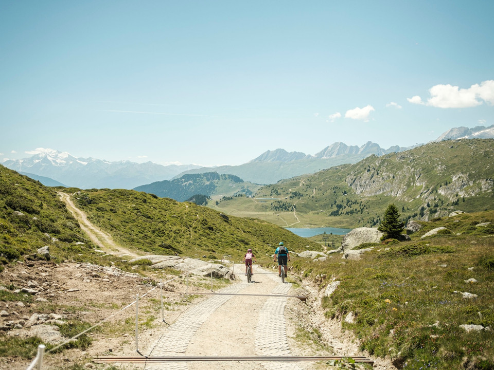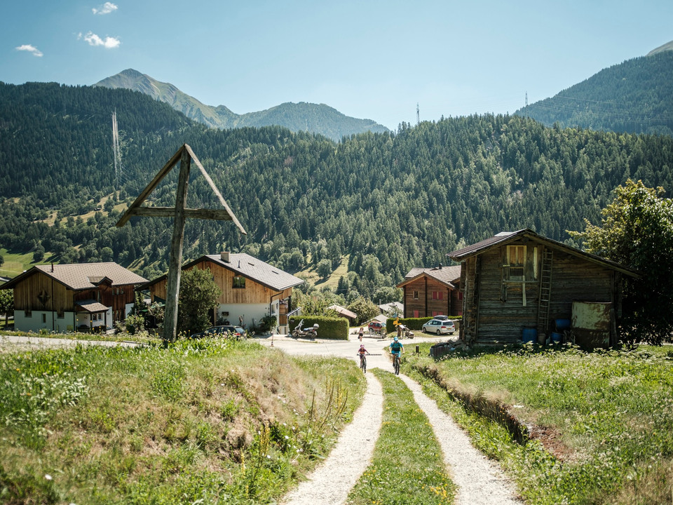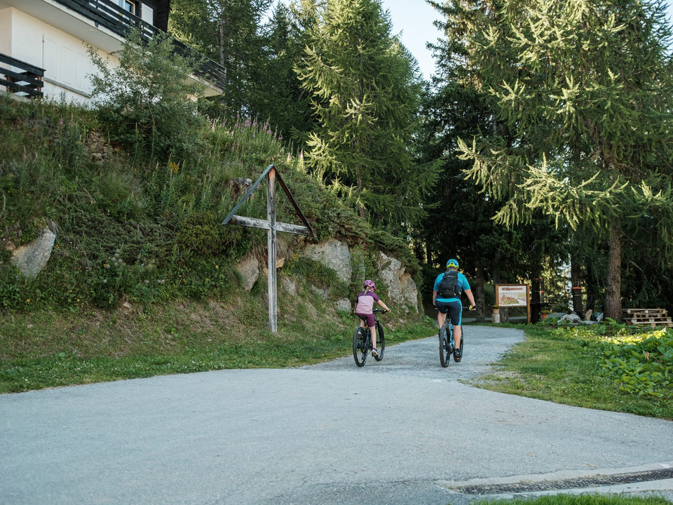 Von der Bergstation Riederalp Mitte fährst du über die asphaltierte Aletschpromenade auf die Bettmeralp. Durchquere den Dorfkern und fahr weiter in Richtung Sessellift Wurzenbord. An der Waldgrenze angekommen, folgst du dem Waldweg, der am Seilpark Baschweri vorbeiführt, bis zur Abzweigung Alpmatten (rechter Hand). Jetzt geht es bergab! Du passierst den Weiler Domo und folgst der asphaltierten Strasse weiter talwärts. Ca. 1km vor Betten Dorf biegst du nach der letzten Haarnadelkurve links auf den Naturweg ab und bikst bis zum Weiler Martisberg. Hier wartet die nächste Abfahrt, hinunter nach Lax. Von dort führt die Bike-Route oberhalb der Hauptstrasse nach Fiesch. Beim ÖV-Hub angekommen, nimmst du die Luftseilbahn hoch auf die Fiescheralp. Über den Herrenweg geht es nun weiter in Richtung Bettmeralp. Lediglich die Passage Bättmer-Hitta – Wurzenbord ist auf diesem Tourabschnitt etwas steil. Die letzte Etappe führt über die Aletschpromenade zurück zur Bergstation Luftseilbahn Riederalp Mitte.