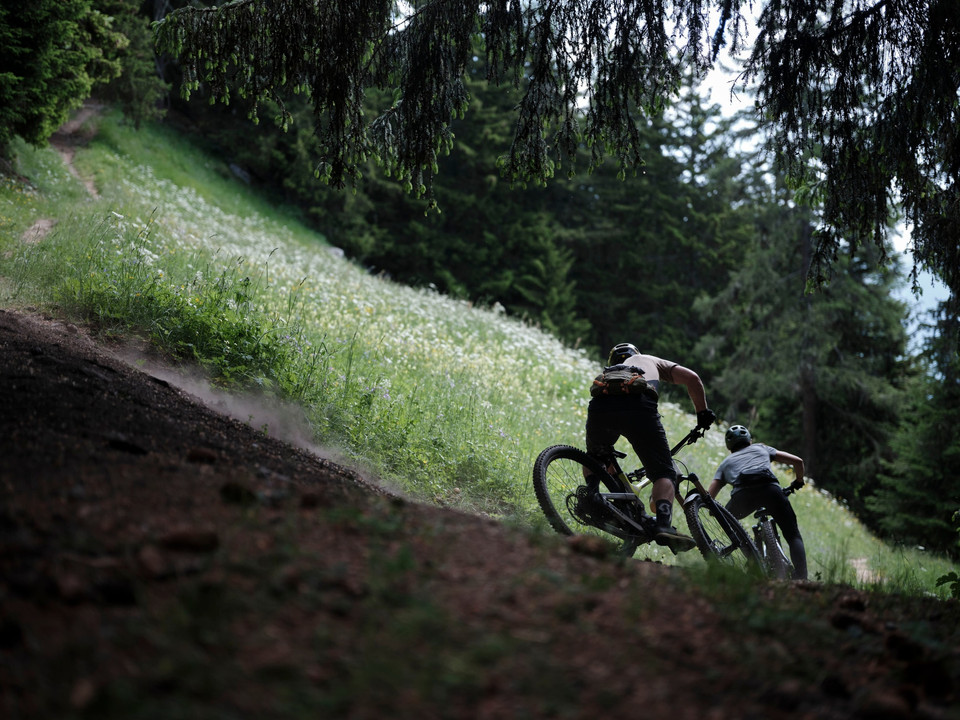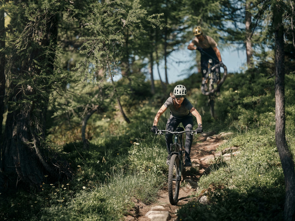 Danach wird’s chilliger: Die ehemalige Forststrasse ist nun Singletrail mit Charme – verspielt, rhythmisch, runter ins Tal. Unten angekommen, kannst du easy via Forststrasse oder Matterhorn Gotthard Bahn (in Tageskarte inkl.) zurück nach Fiesch oder zur Talstation Bettmeralp.