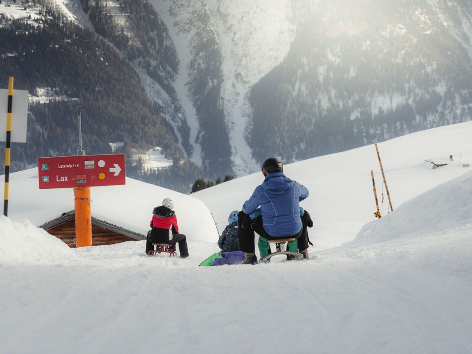 Von Fiesch fährst du mit der Gondelbahn hoch auf die Fiescheralp. Von der Bergstation gehst du rund 5 Minuten in östliche Richtung bis zum Start des Schlittelweges Fiescheralp - Lax. Nun warten 11 km purer Schlittelspass! Auf den vorerst rasanten, aber ungefährlichen Streckenabschnitt folgt eine romantische Fahrt durch verschneite Wälder, die knapp oberhalb von Lax endet. Von Lax bringt dich der Sportbus oder die Matterhorn Gotthard Bahn (Zug) zurück nach Fiesch.