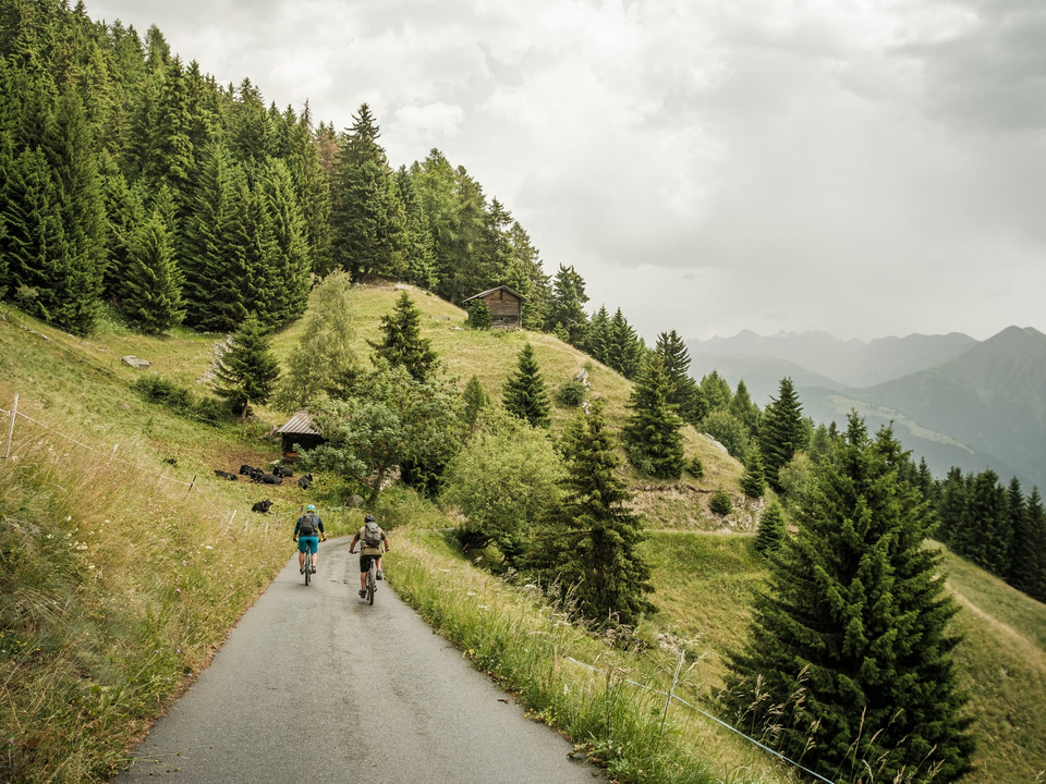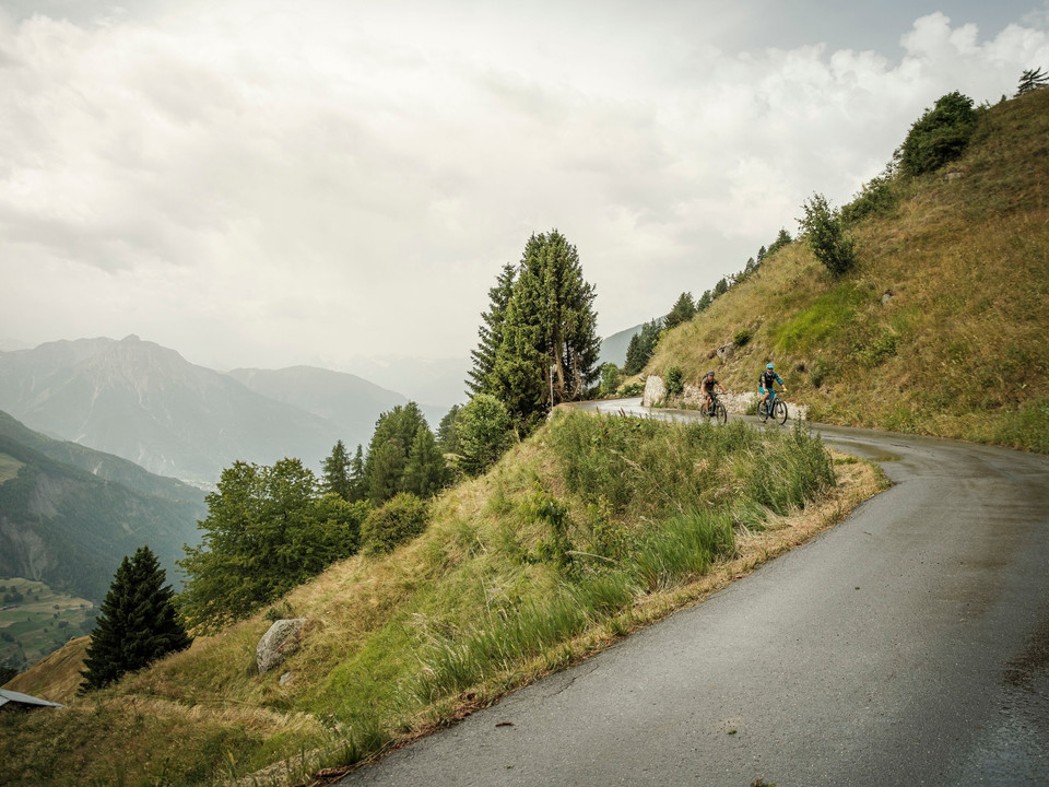The route starts at the Fiesch public transport hub. Pass through the town and follow the unpaved road to Lax. From the Deischbach, go uphill on Martisbergerstrasse up to the height of Ritti, where you turn left onto the forest road. Via the hamlet of Egga you ride to Betten and further to Goppisberg. In long serpentines it now goes – past the hamlets Bodu, Gstalji, Bina, and Biel – up to the Riederalp. From there you ride eastwards via the Aletsch promenade to Bettmeralp. At the height of the aerial cableway station switch to the road leading downhill to the hamlet of Domo. There you take the forest path turning left and ride through the Baderwald to Martisberg. Here begins the descent towards Fiesch: after the first hairpin curve, a well-rideable single trail branches off to the left, which shortly afterwards rejoins the Martisbergerstrasse. Alternatively, you simply stay on the paved road. Once in the valley, you ride back to Fiesch on the country road.