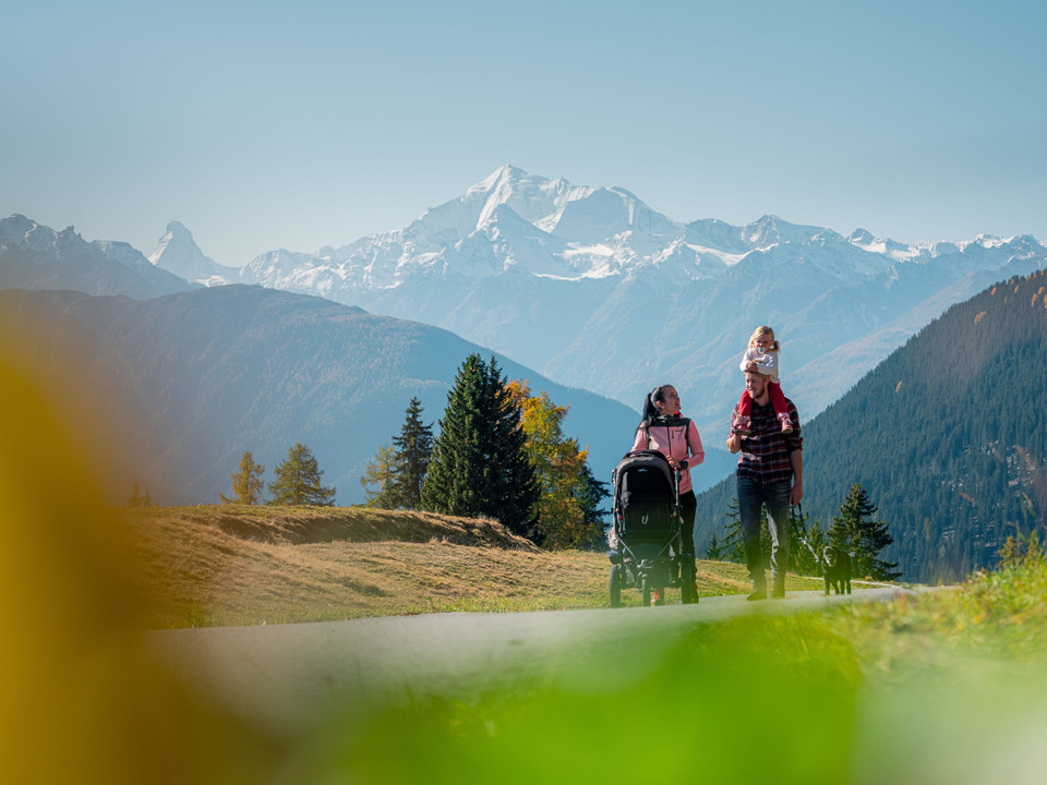 Vom Ortsende wanderst du auf der Aletschpromenade Richtung Riederalp West. Nachdem du den schönen Bergwald hinter dir gelassen hast, kommst du in offenes Gelände: Der eindrucksvolle Panoramablick auf die Mischabelgruppe, das Matterhorn, Weisshorn, hinunter ins Rhonetal und bis Riederalp West ist nun dein ständiger Begleiter.
